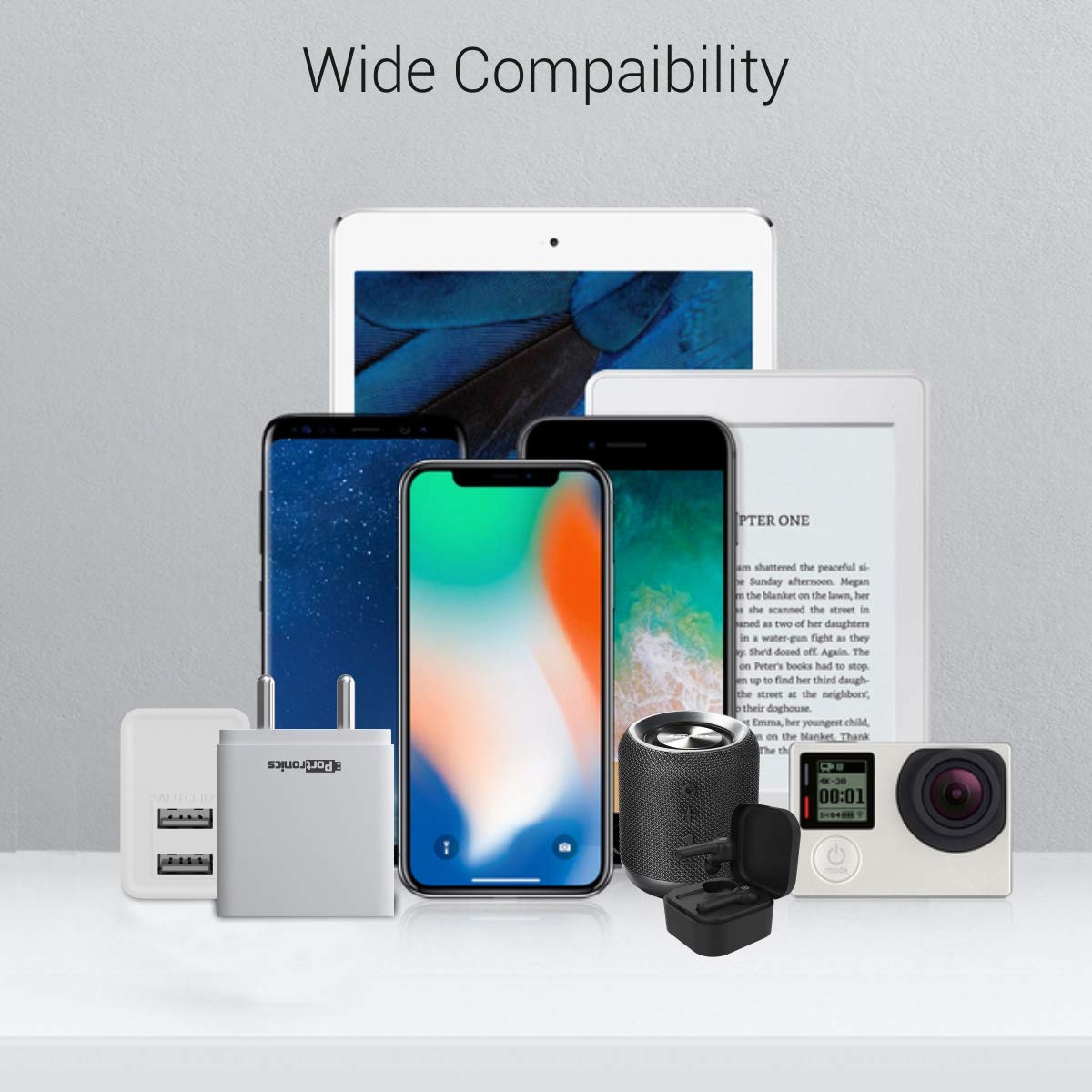 Portronics Adapto 648 POR-648, 2.4A Quick Charging Dual USB Port Wall Adapter with 1M Micro-USB Charging Cable (White)